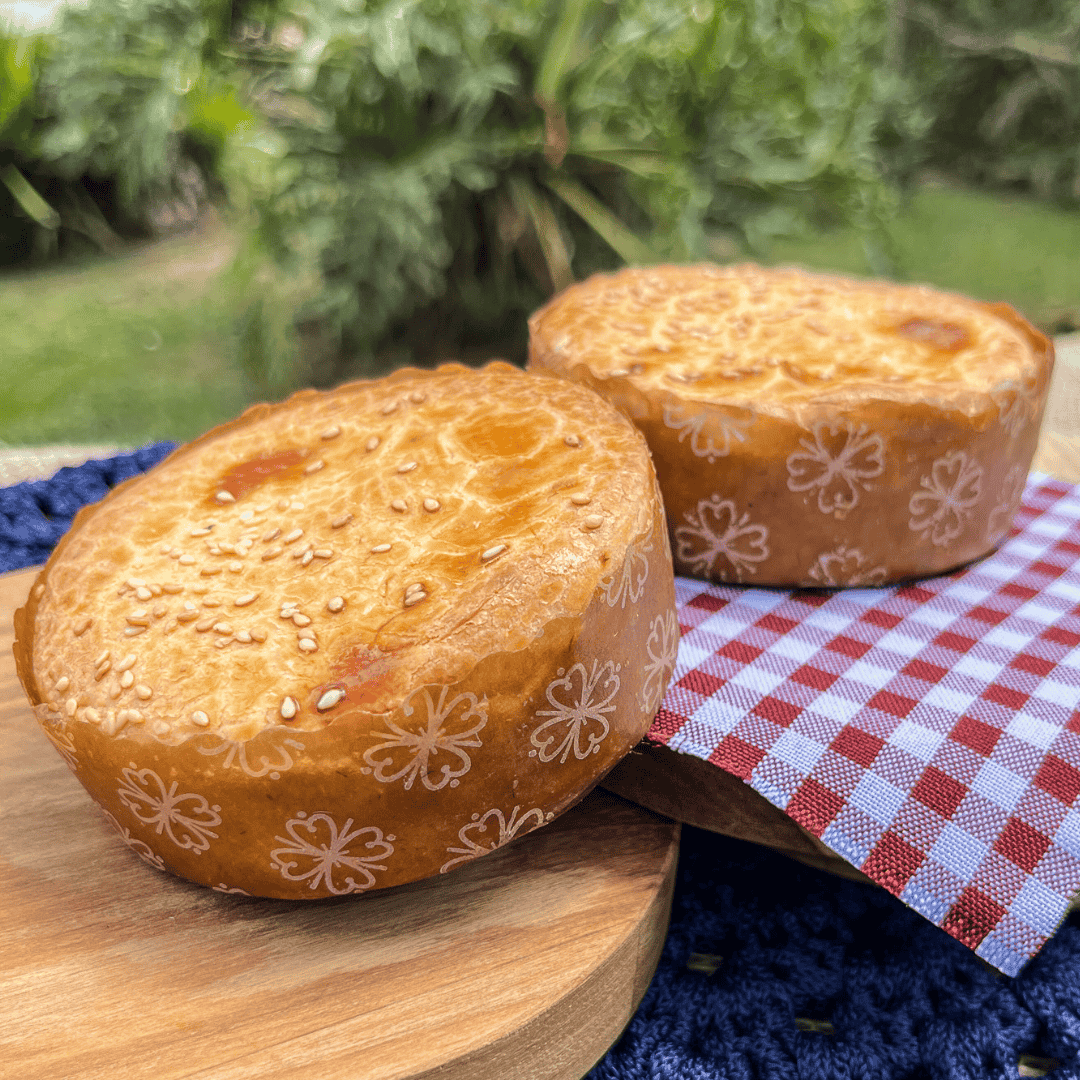 Mini torta de frango com requeijão assada e congelada.